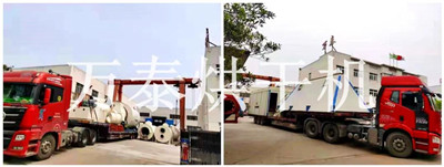 4月16日,安徽客戶在萬泰訂購的石英砂烘干機成套設備經過萬泰工作人員嚴格的出廠安全檢測后,順利裝車并發往安徽。
