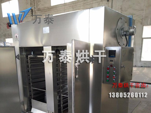 熱風烘干箱以蒸汽和電或煤炭為熱媒,利用高效加熱設備加熱,大量熱風在箱內進行了熱風循環,經過不斷新風補充從進風口進入箱體,然后不斷從排濕口排出,這樣增加了傳熱效果,使箱內物料水份逐漸減少,達到烘干效果。